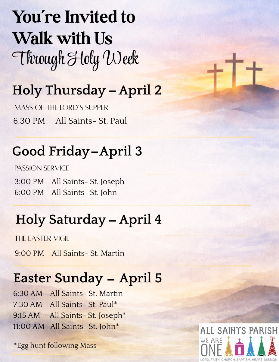 Sun 11:00am – St. Joseph All Masses are live-streamed Missed Sunday Mass?