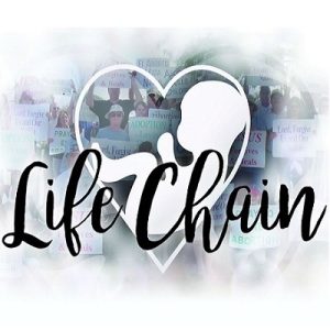 Life Chain is not political or confrontational. It is a silent prayer by Christians to communicate their opposition to abortion. Participants prayerfully display CHOOSE LIFE signs to clarify why we are “standing up for life.” and in favor of the rights of the unborn