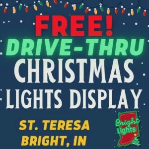 • Save the Date ~ Christmas Concert! ~ Friday, November 28th, 6:30pm at St. Teresa’s in Bright. Music by: My Brother’s Keeper. After the show, enjoy the Bright Lights display.