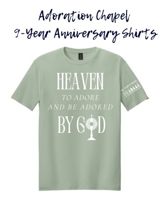 Click here to order (by Feb. 13th) your T-Shirt to commemorate the 9-year anniversary of our Adoration Chapel